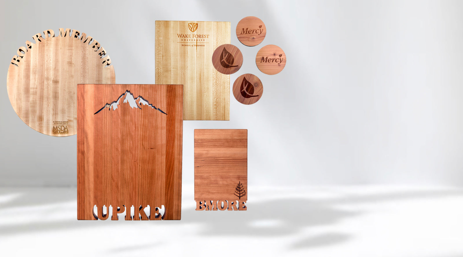 - When it comes to corporate or business gifts handmade is always best. It doesn't get much more handmade than our personalized wood cutting boards.